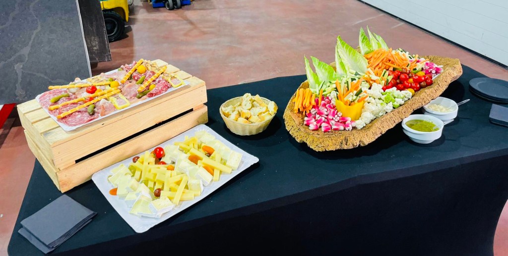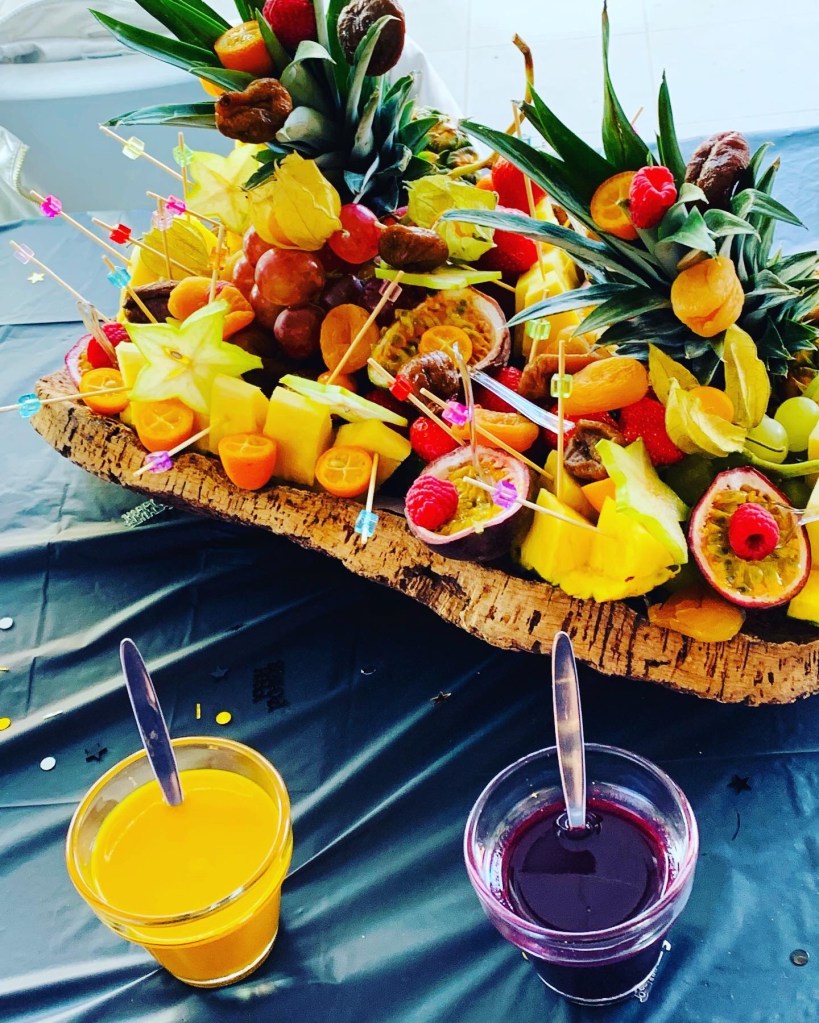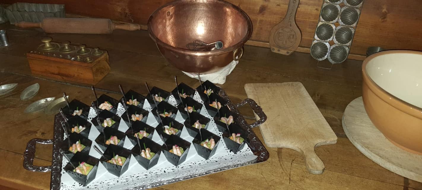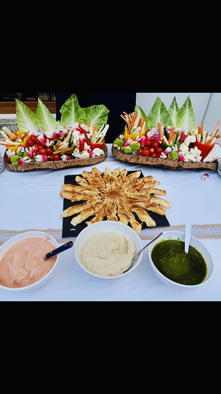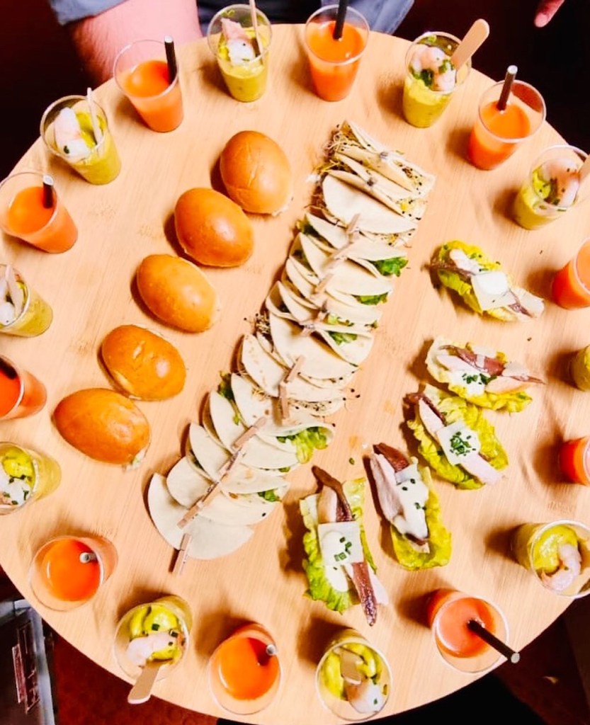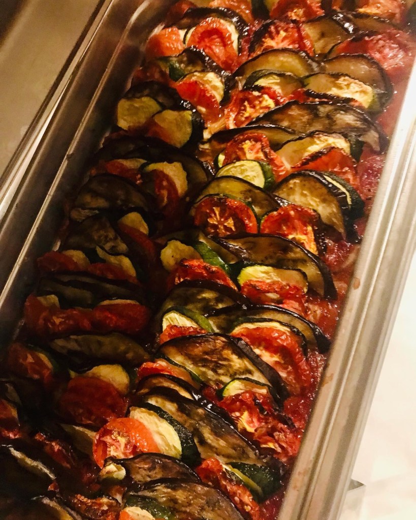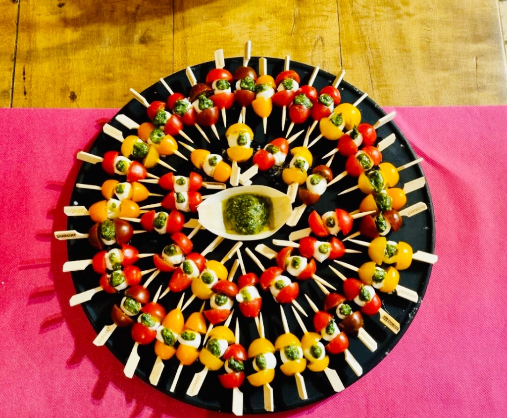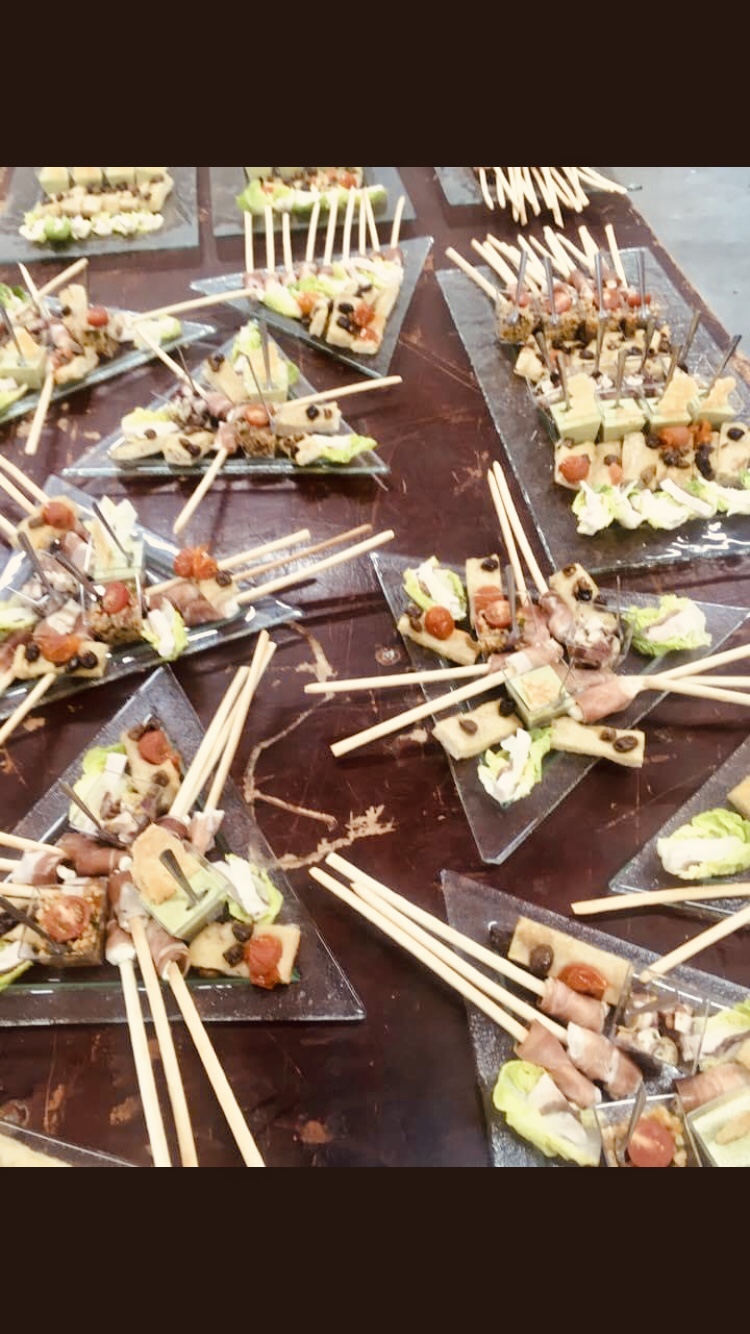 Galerie Bar de fruits Bar de fruits et légumes Bœuf bourguignon en live Cooking Tian de légumes Gratin dauphinois Découpe jambon serano Plateau salés Mignardises
