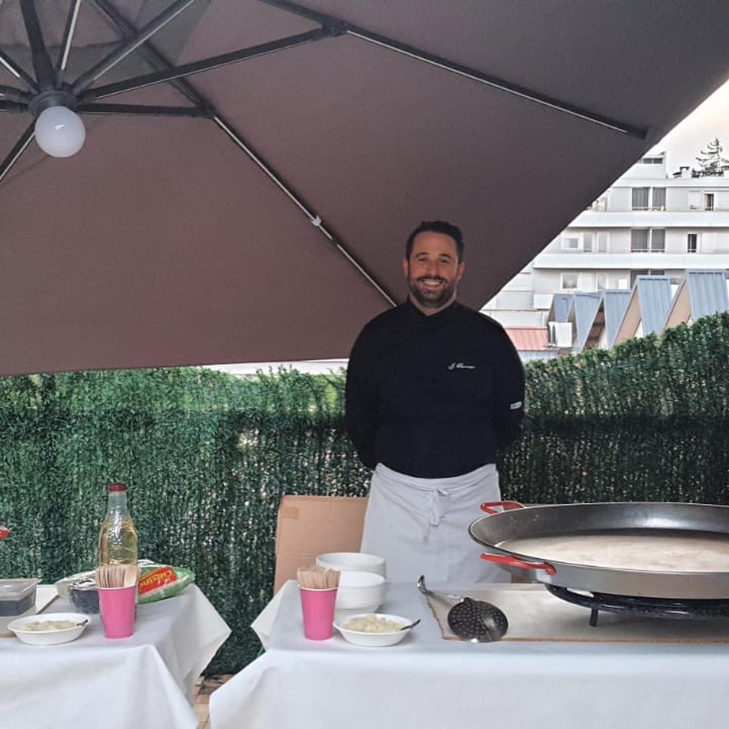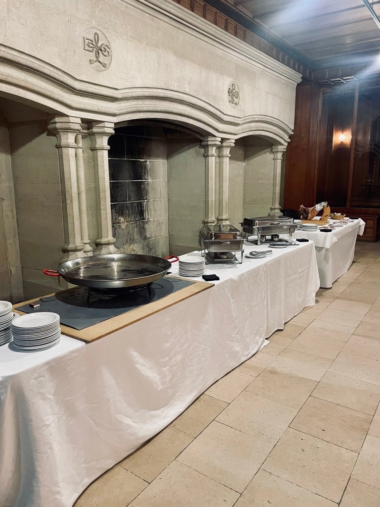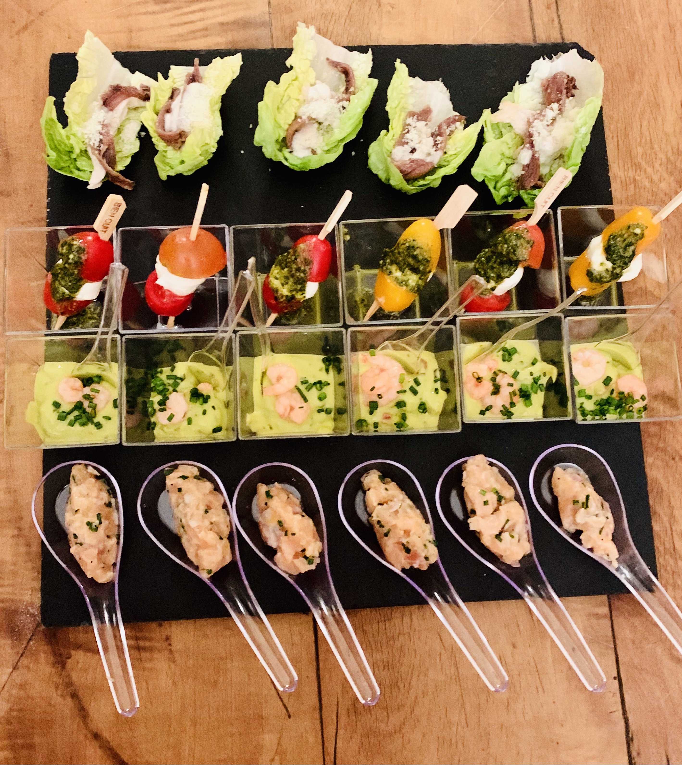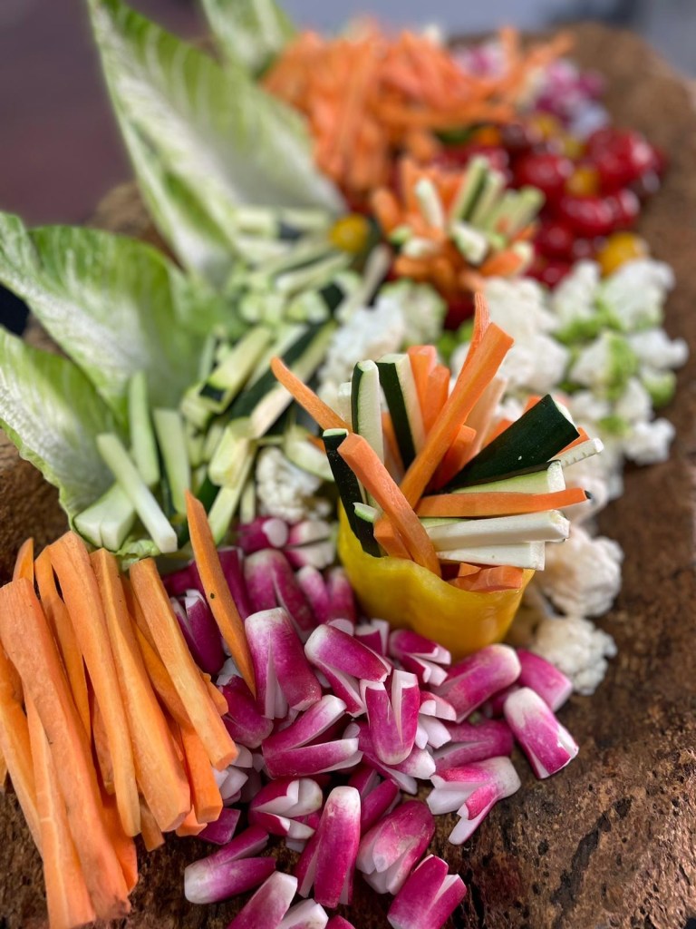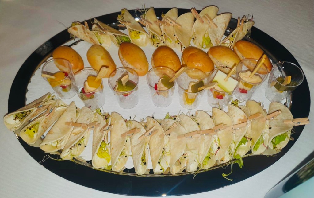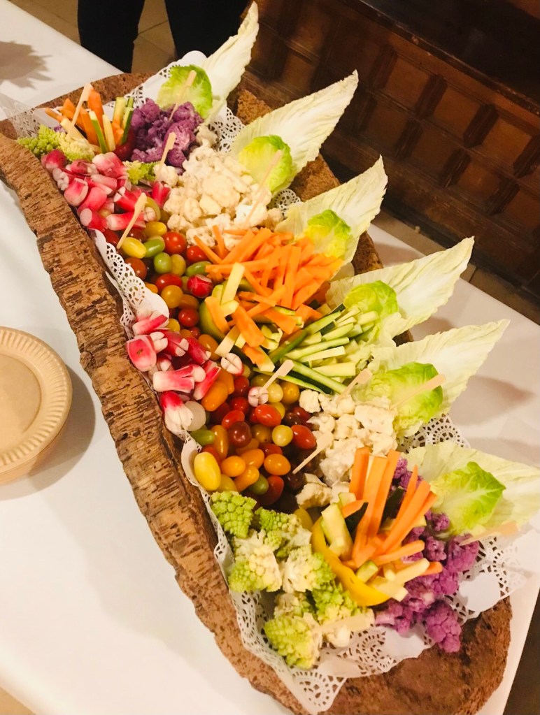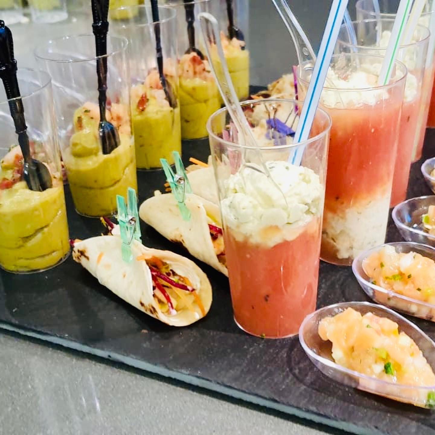 Galerie Bar de fruits Bar de fruits et légumes Bœuf bourguignon en live Cooking Tian de légumes Gratin dauphinois Découpe jambon serano Plateau salés Mignardises