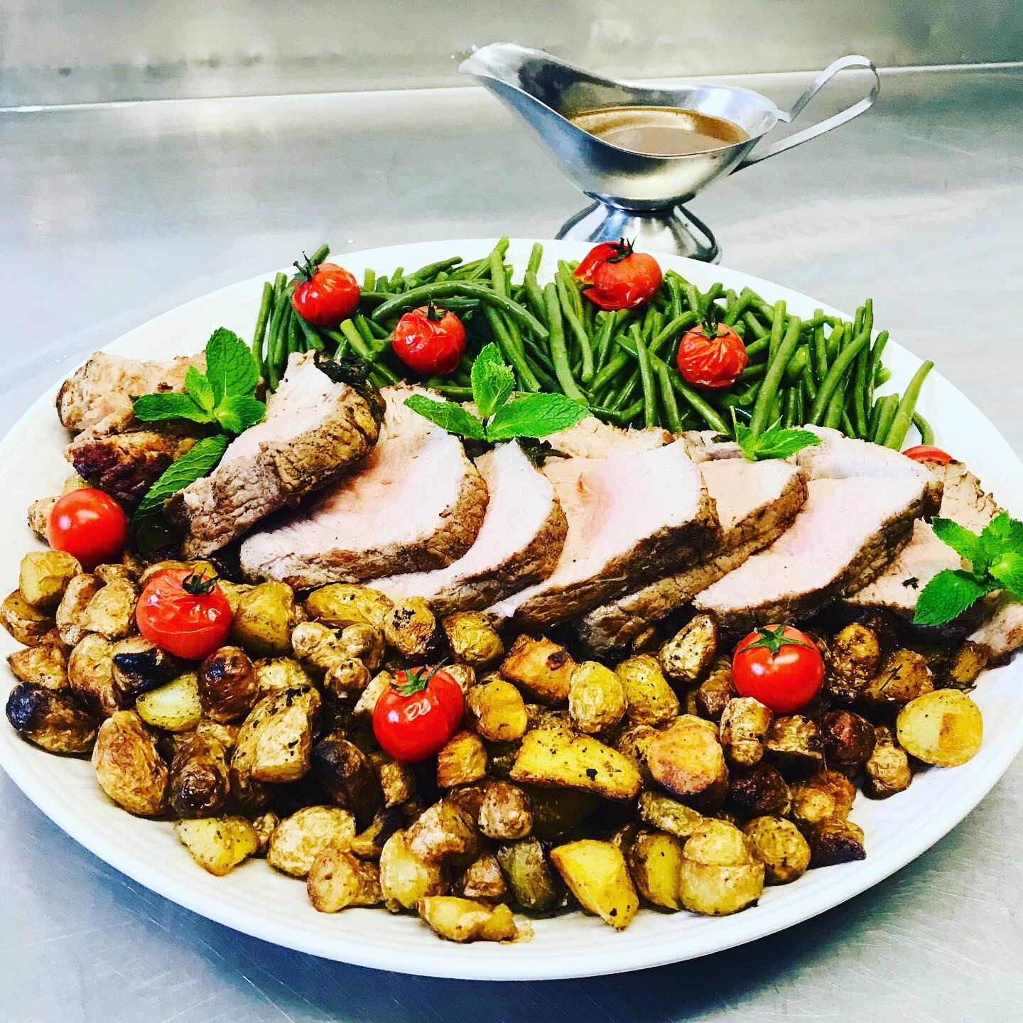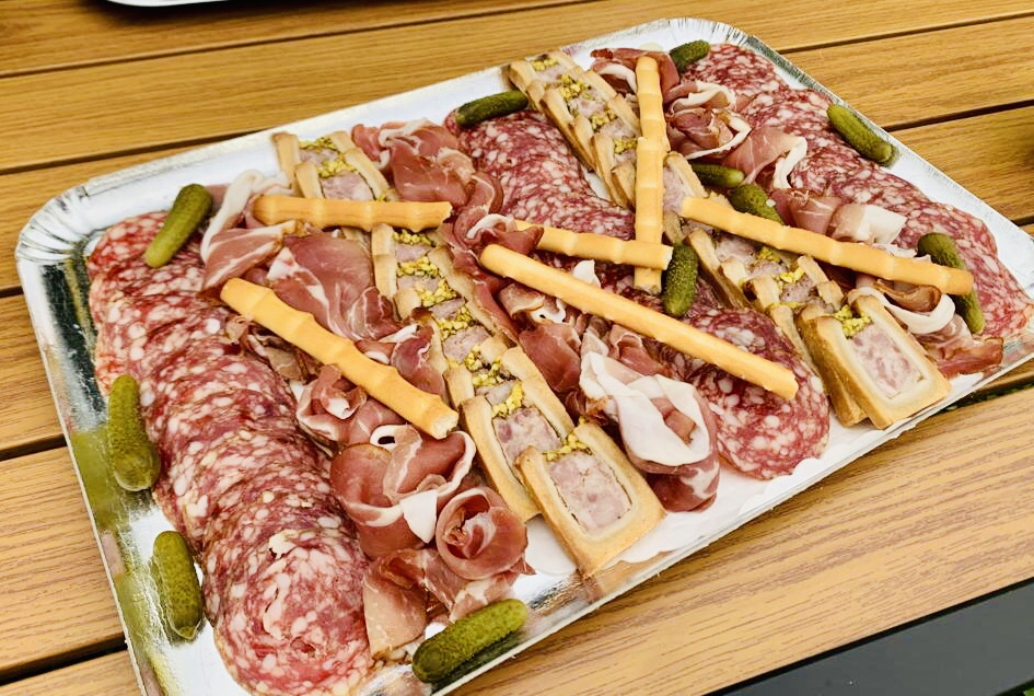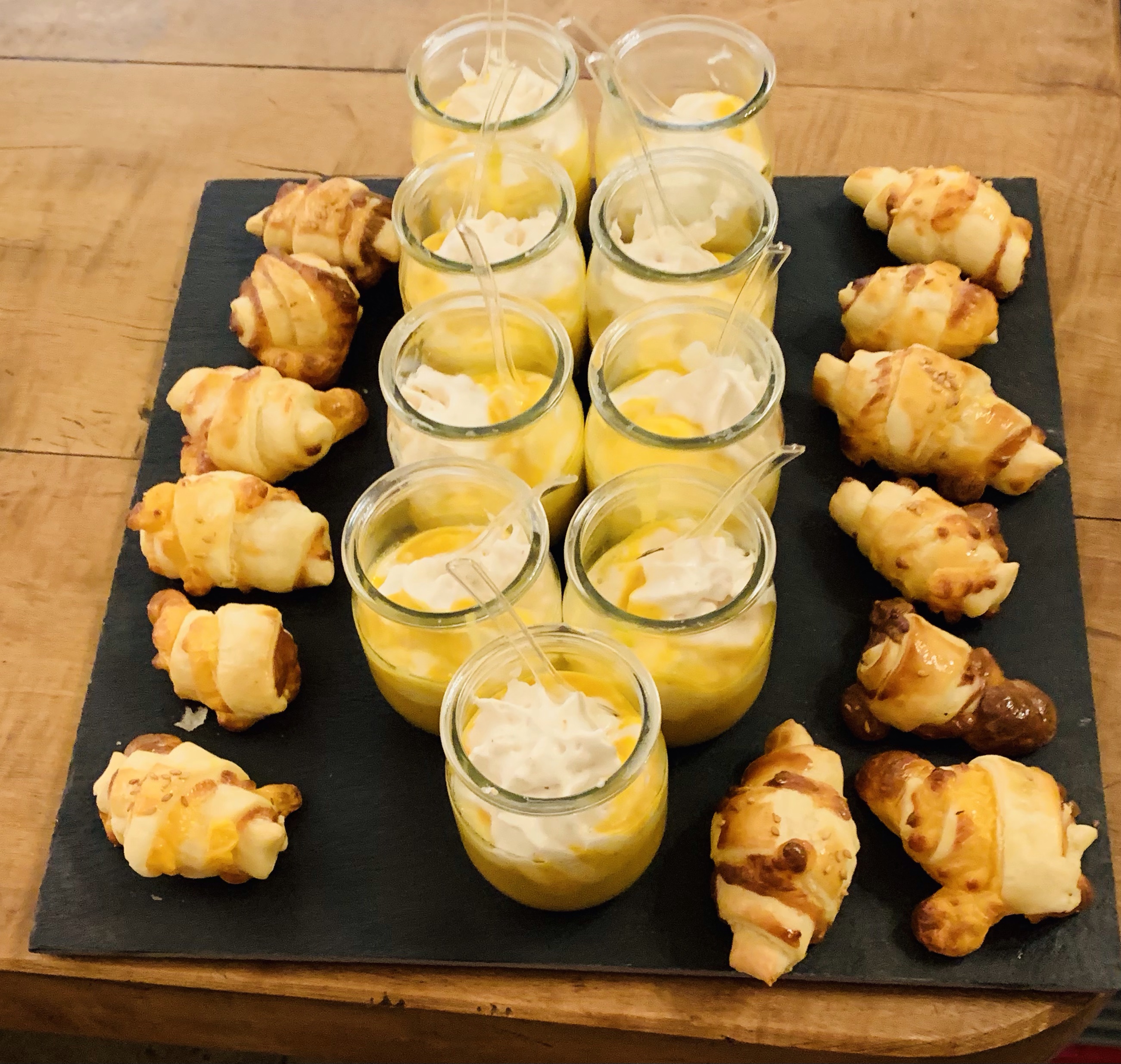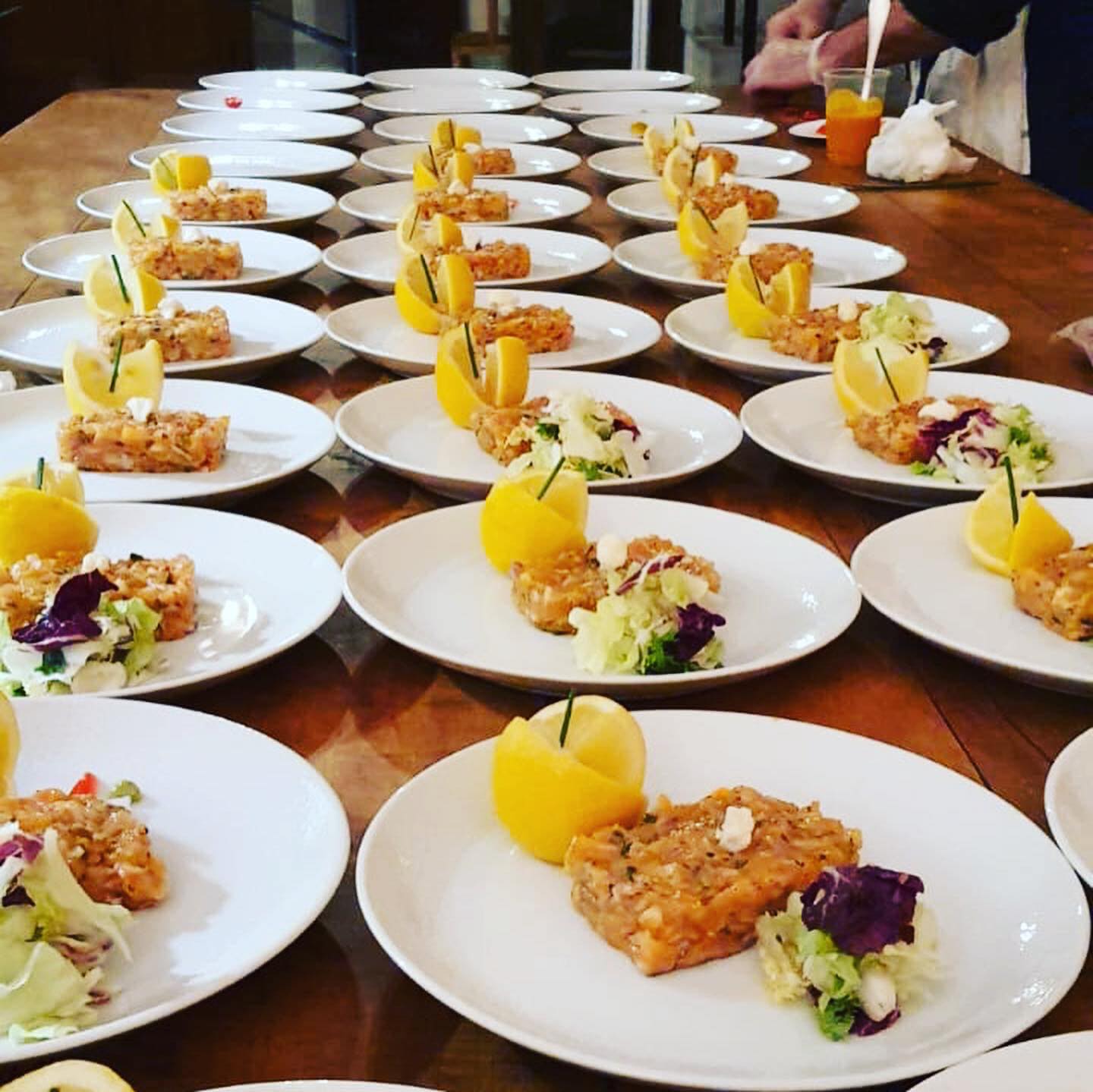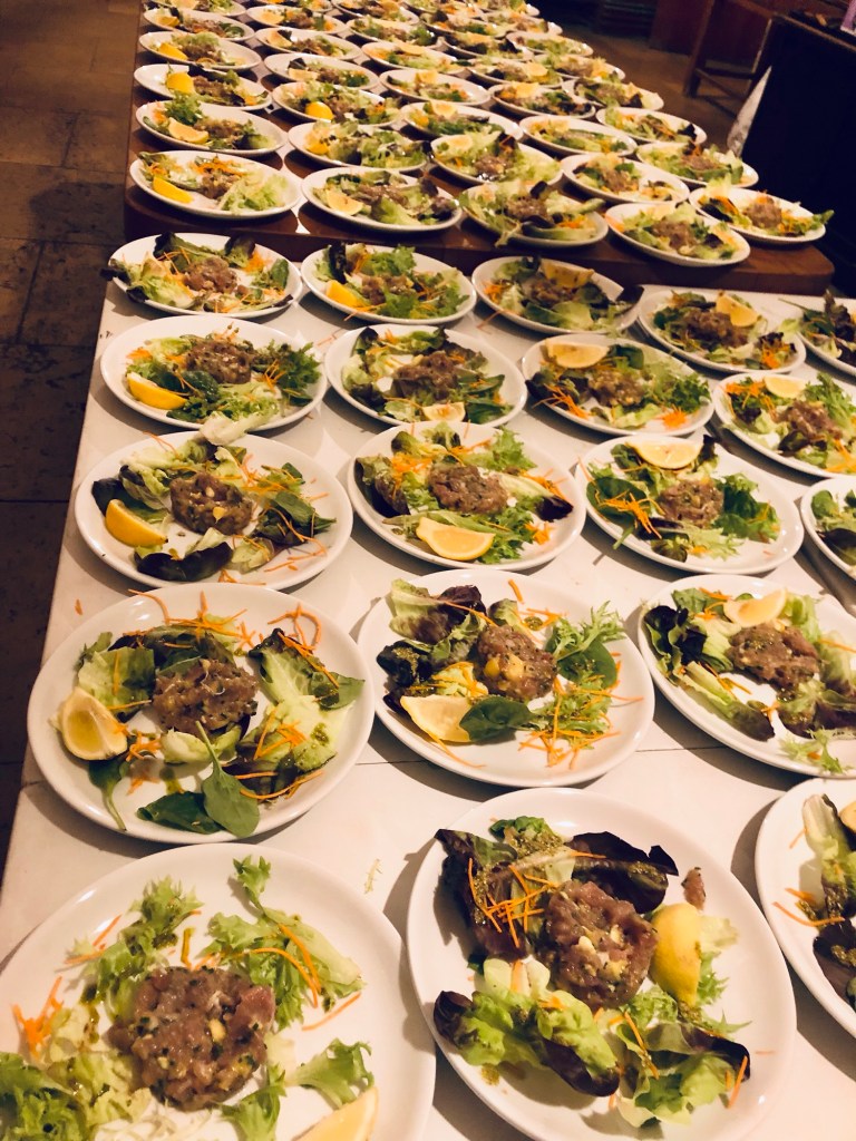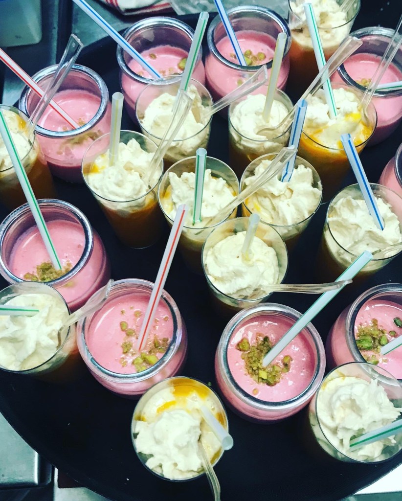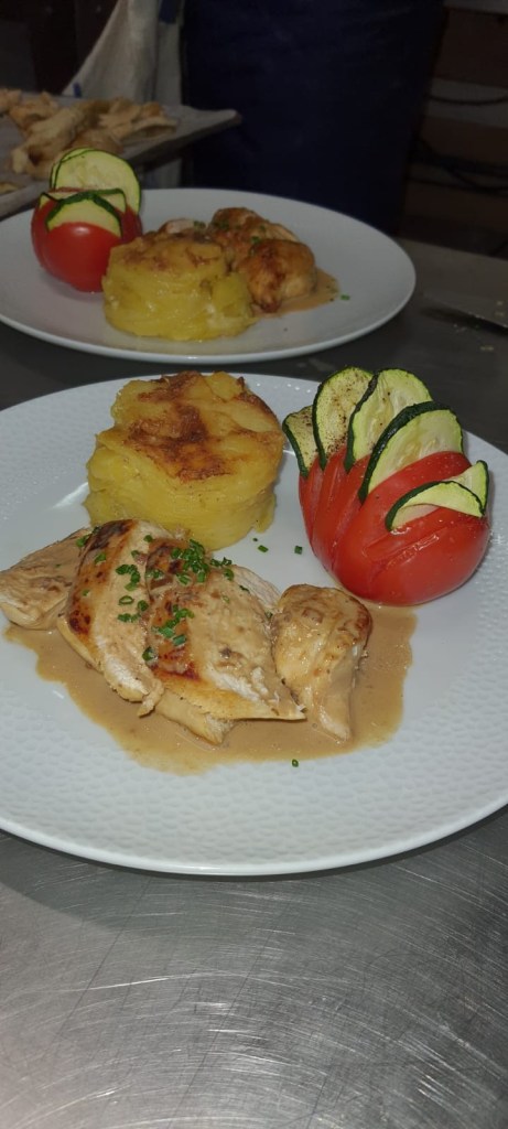 Galerie Bar de fruits Bar de fruits et légumes Bœuf bourguignon en live Cooking Tian de légumes Gratin dauphinois Découpe jambon serano Plateau salés Mignardises